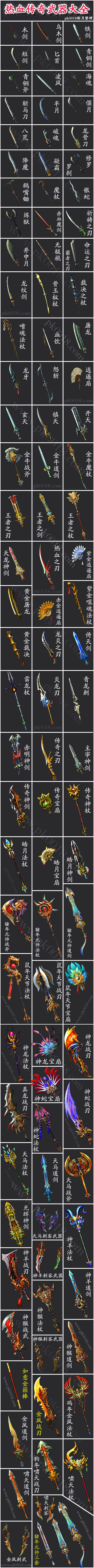大家好,我是pk0018新月传奇,前几天做了武器大全,衣服大全,项链大全,戒指大全,护腕大全等等,武器大全也是受到了大家的喜爱,很多人留言要求我做一个备注版,很多人分不清武器,今天备注版来了,图片收集了3个小时,图片制作了4个小时,图片长1.5米,应该是迄今为止最全的武器大全了,谁敢比我全系列。95%的武器都收录在内,如有不齐的,请留言告知。